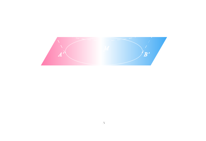 Captura da seção A’B’ do cone pelo quarto plano, na qual valor M é o mais preciso possível (neste caso, cerca de 55,52357998489154% masculino) e a captura do eixo do cone é estendida analiticamente às pontas AB do sistema.